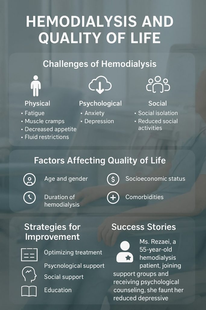 (بیماران تحت همودیالیز اغلب دچار افسردگی و اضطراب میشوند که کیفیت زندگی آنها را به شدت کاهش میدهد. مداخلات روانی-اجتماعی میتواند وضعیت روانی آنها را بهبود بخشد.)